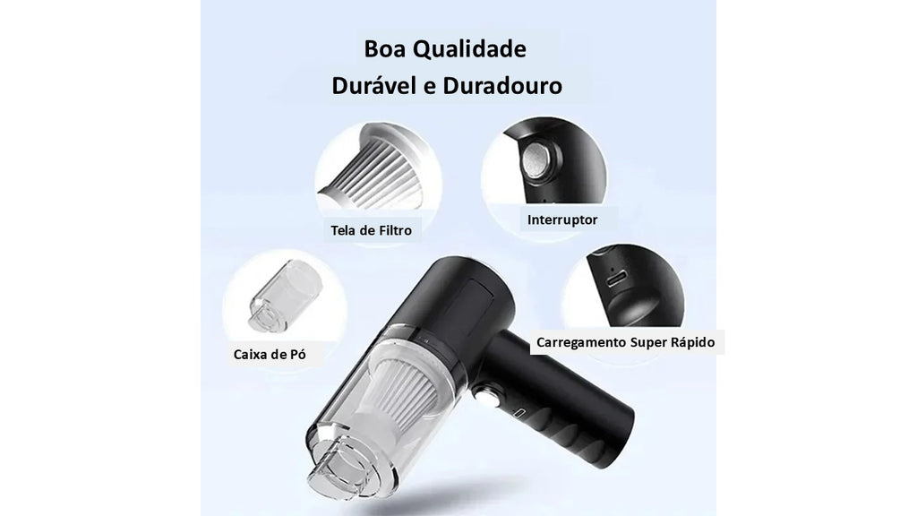 Aspirador Portátil Sem Fio – Compacto, Potente e Versátil